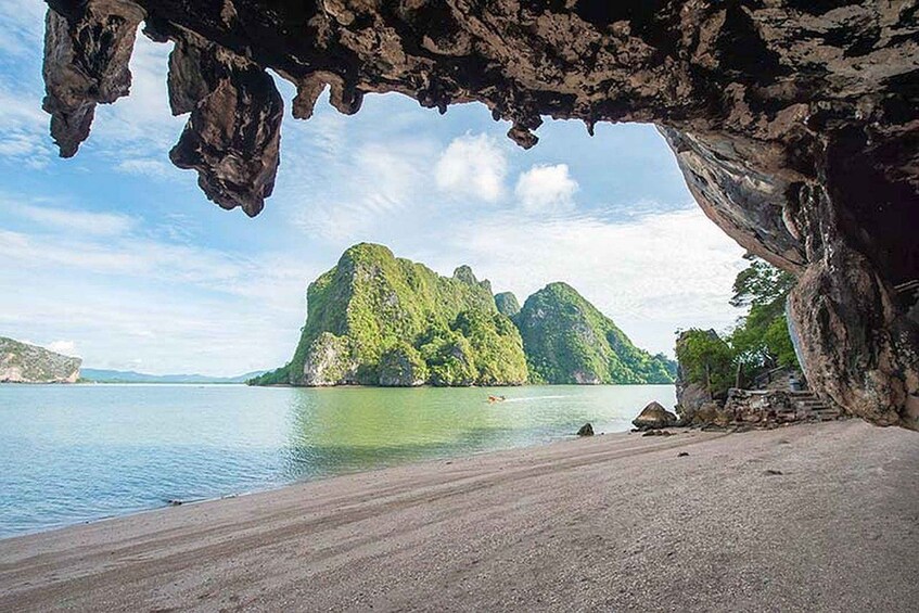 Our guide introduced us to Phang Nga Bay and explained the day's flexible itinerary, which would adjust based on tidal conditions. Our first stop was at Koh Hong, known as “Room Island,” where we were led by friendly and humorous paddle guides. They took us through narrow entrances into a labyrinth of hidden lagoons surrounded by rugged limestone cliffs, offering stunning views and photo opportunities.