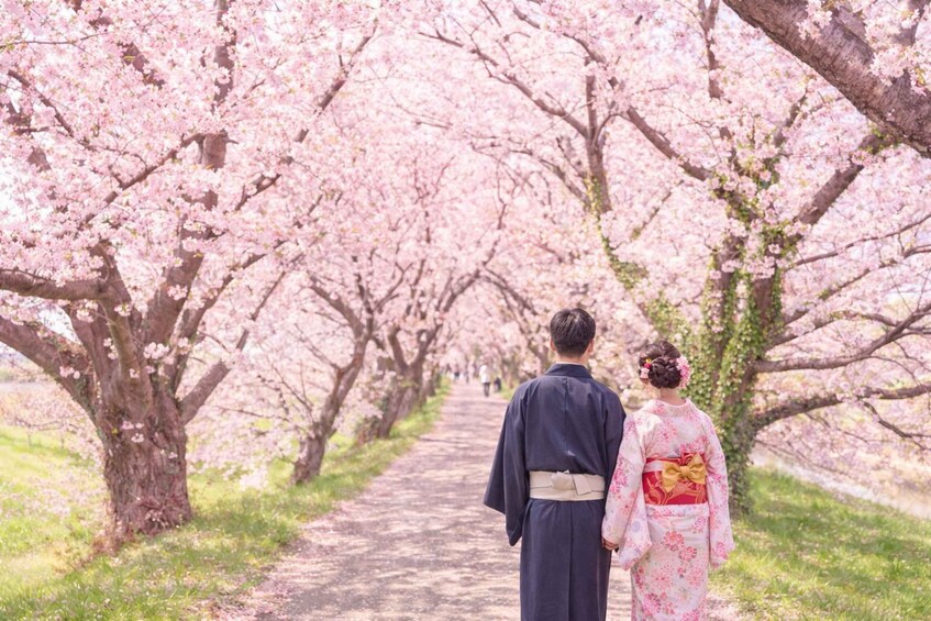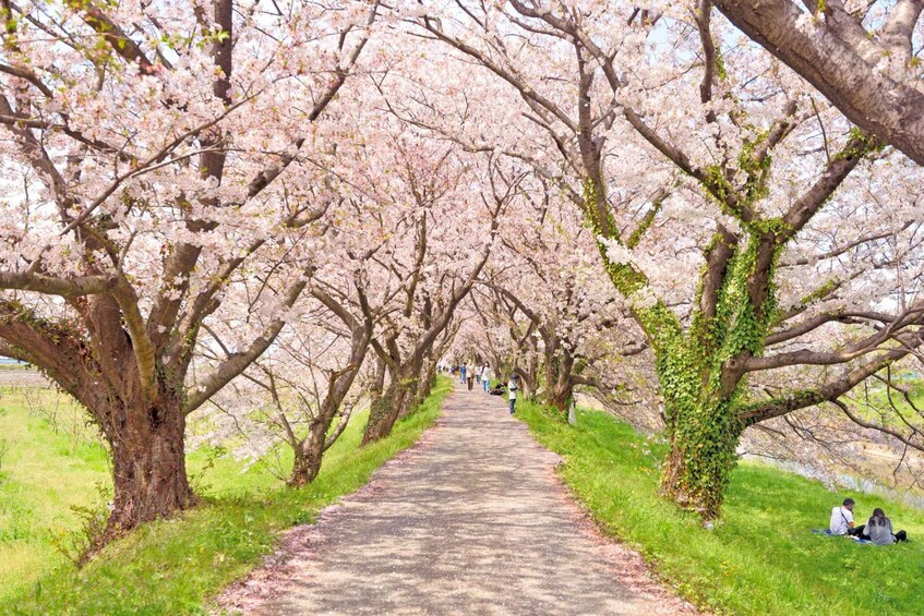 Continue to Nagakawa Cherry Blossom Avenue (Rukawa Sakura Avenue), a scenic riverside path lined with blooming cherry trees. This hidden gem is perfect for a relaxing walk and photography, offering a quieter and more intimate cherry blossom experience away from the crowds.