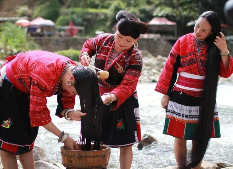 Visit Huangluo, home to the Red Yao people and world-famous for their long-hair traditions. Admire their traditional red costumes and learn how they have maintained their culture for generations.