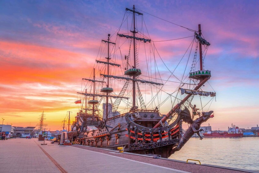 Finally, the tour concludes in Gdynia, a city with a fascinating maritime history. At Kościuszki Square, explore the bustling port area and admire murals depicting the city’s notable past residents. See the iconic ships “Dar Pomorza” and “Błyskawica,” two historic vessels that are now museums, representing Gdynia’s proud naval heritage.
