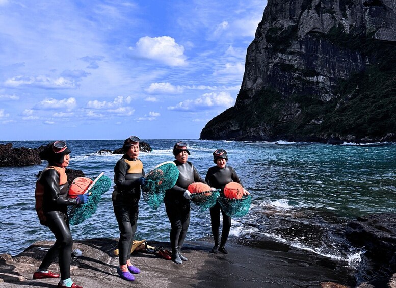 Start at Hamdeok Beach, one of the top 3 most beautiful beaches in Jeju. Here, you can also see Jeju's intangible cultural heritage, the 'haenyeo' (female divers).