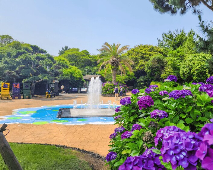 Explore the volcanic cave at Ilchul Land, which features the Lava Tube System and is Jeju's largest botanical garden, showcasing various seasonal plants.