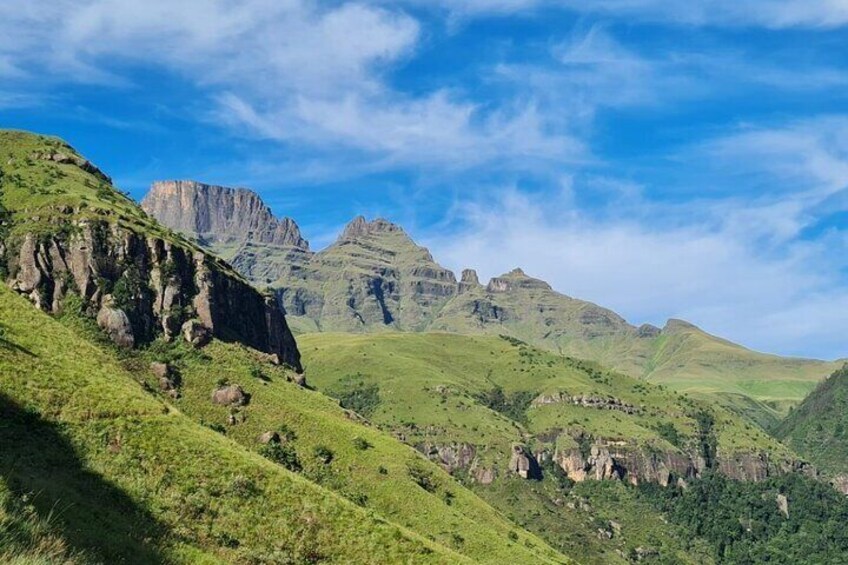 From the Nelson Mandela Capture Site, the journey continues southwest towards the Drakensberg mountains in the Underberg region. The drive passes through the scenic KwaZulu-Natal Midlands, with rolling hills, lush farmlands, and quaint rural villages providing a glimpse of local life. As you approach the Drakensberg foothills, the landscape transforms into dramatic mountain vistas, deep valleys, and winding rivers, setting the stage for outdoor adventures and exploration in one of South Africa’s most striking natural regions.