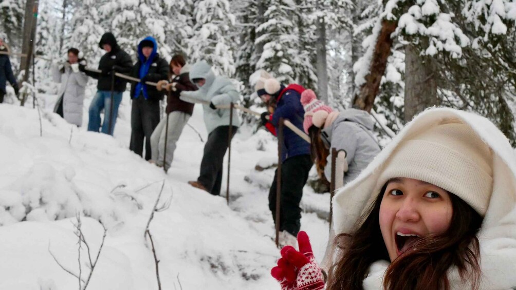 The tour typically begins with a drive from your hotel to the Korouoma Canyon, where you'll strap on snowshoes and embark on a hike through the snow-covered forests. Along the way, your guide will provide insights into the geology, history, and wildlife of the area.