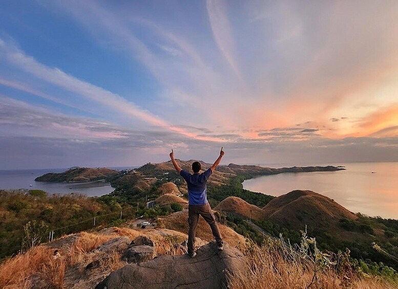 Next, hike Sylvia Hill (Bukit Cinta), also known as “Love Hill,” and prepare to be mesmerised by the stunning panorama of Labuan Bajo. From its peak, you'll be treated to a 360-degree view of vast turquoise waters dotted with small islands in the distance, and traditional Phinisi boats sailing serenely. This hill is the perfect spot to enjoy the gentle breeze and capture the beauty of Labuan Bajo from above. If you come at the right time, you can also witness a captivating sunrise or sunset.