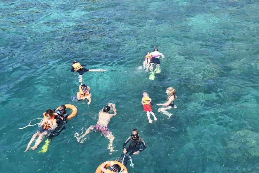 Cruise further to the 2nd snorkel stop at Koh Maa where you can feed the fish with bread or bananas. Thousands of giant bats can also be seen here.