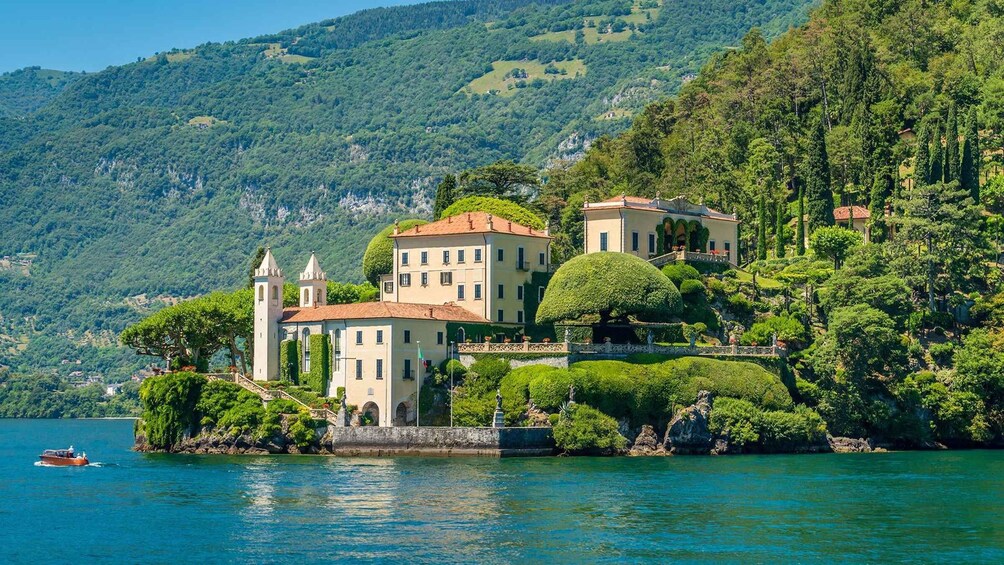 After the visit, the cruise continues along one of the most enchanting stretches of the lake, passing two legendary properties: Villa La Cassinella—a luxury retreat offering total privacy, reachable only by boat and surrounded by a vast park—and Villa Balbiano, a historic residence dating back to the late 16th century, with a lakeside Italian garden and period interiors, also chosen as a filming location for House of Gucci.