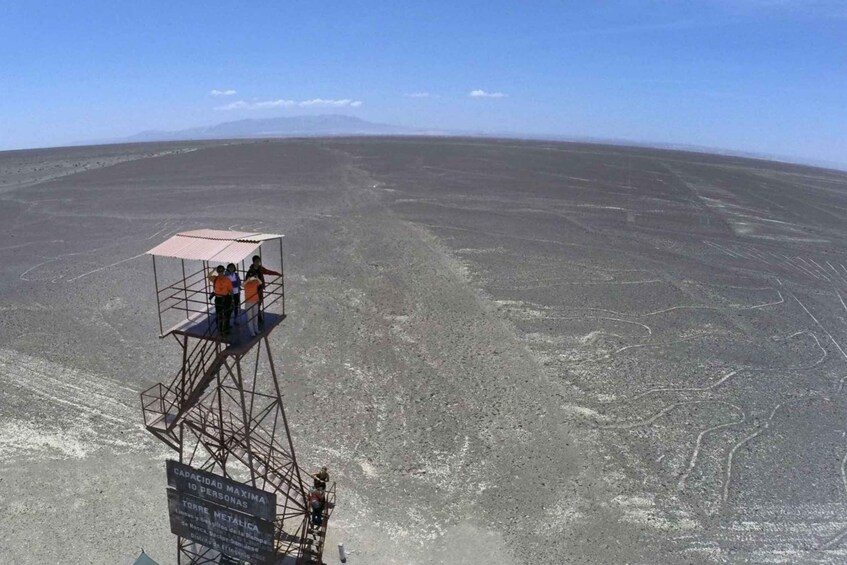 We will continue the tour at the metal viewing platform of the Nazca Lines. We will climb the 20-meter-high tower to contemplate the closest figures, such as the tree or the hand. We assure you that you will be surprised by its magnitude!