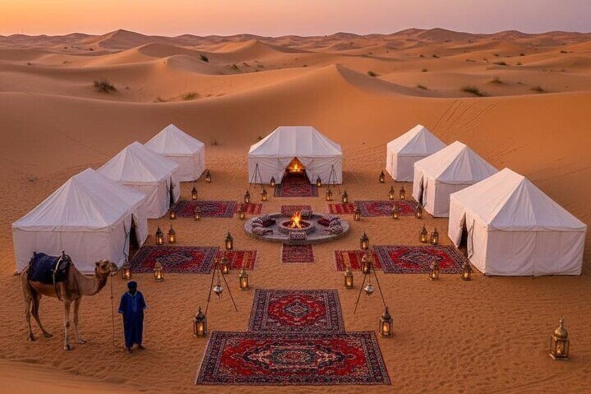 Superior Hotel & Camp: First night at Dades Paradise Luxury Riad Dades, Xaluca Dades, or similar. Second night at Merzouga Luxury Camp with AC