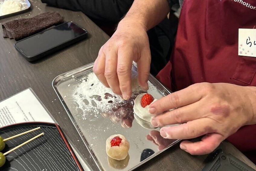 The class takes place in a private studio located within a short walking distance from Meguro Station of the JR Yamanote Line or the metro station. You will be greeted by the instructor who will start off with a short presentation about the traditions and festivals that involve mochi and how it is important to the Japanese culture Then you will learn how to make strawberry daifuku mochi, three-color dango (mochi on skewers), and warabi mochi. Then the instructor serve you savoury grilled mochi with Soya Sauce and Nori Seaweed. There will be a demonstration on how to make mochi ice cream. The class with conclude with a tasting session served with green tea or coffee. The instructor who is a certified Wagashi Instructor is fluent in English so she will be able to give you some insights on the local life as well as advice on where to shop or go sightseeing in Tokyo.