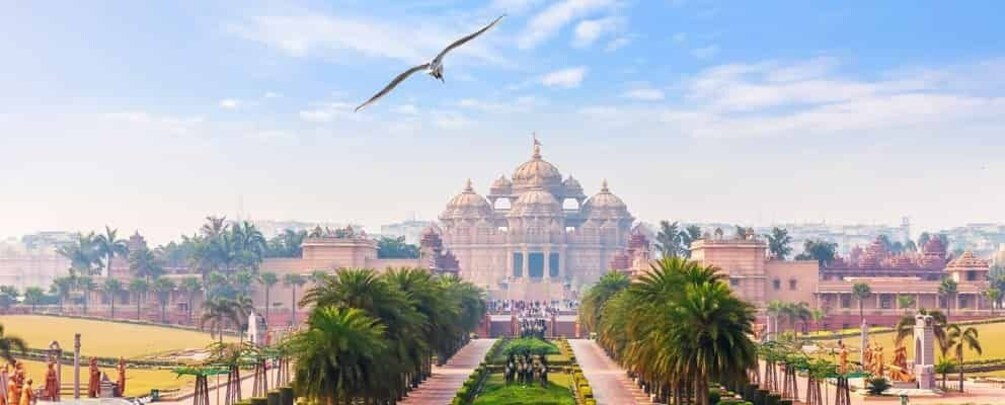 Visit: Akshardham Temple with Water & Light Show, private car, and guide.