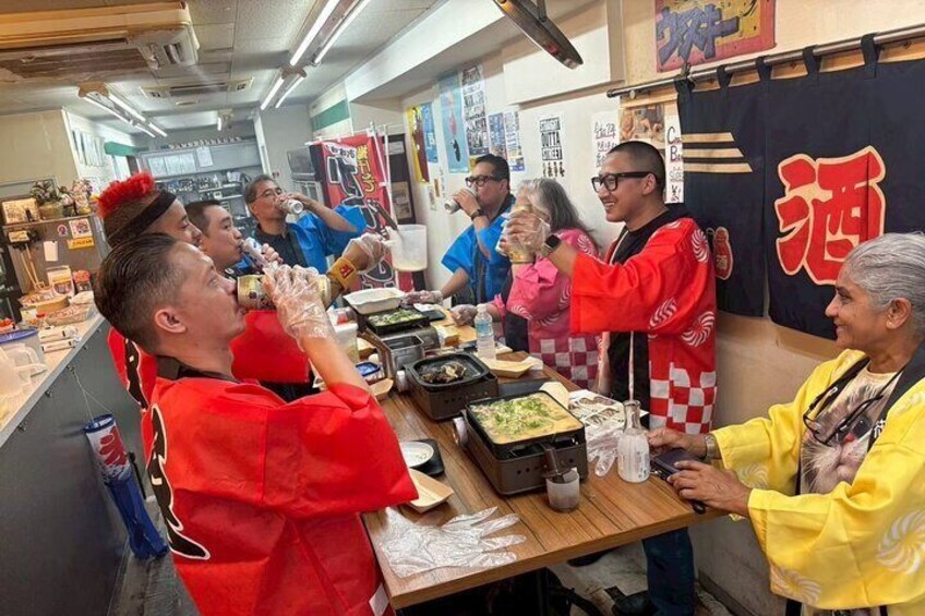 enjoy the atmosphere of a traditional Osaka street food stall!