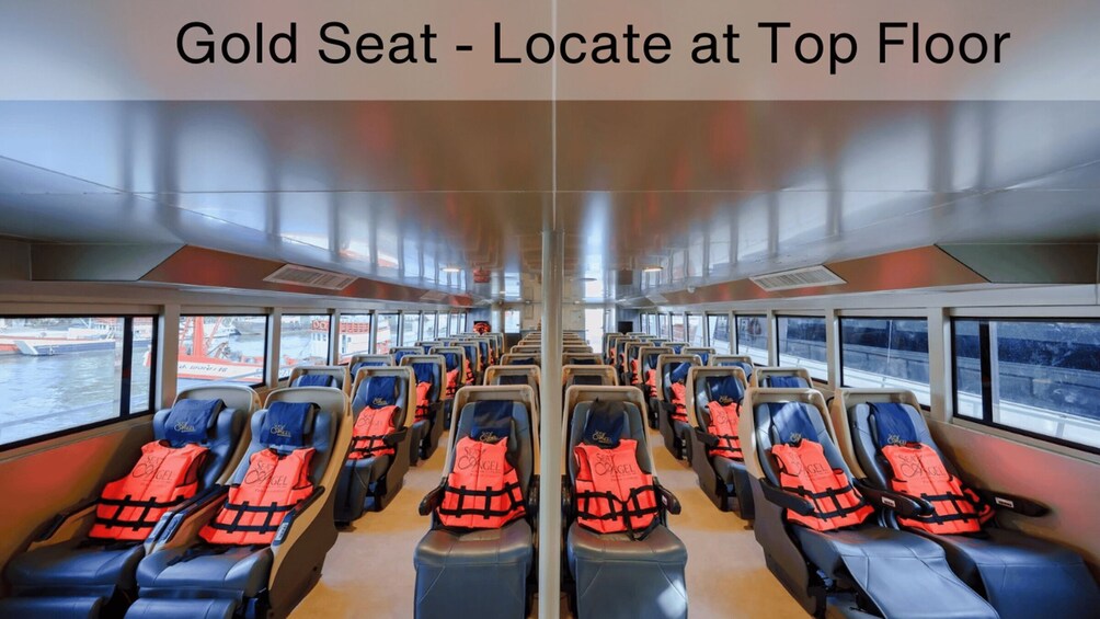 Gold Class with 50 electric massage seat in lounge area at the third floor, food & soft drink on board, lunch at sea society area ,first priority service(private outdoor zone) and private room with security key card.