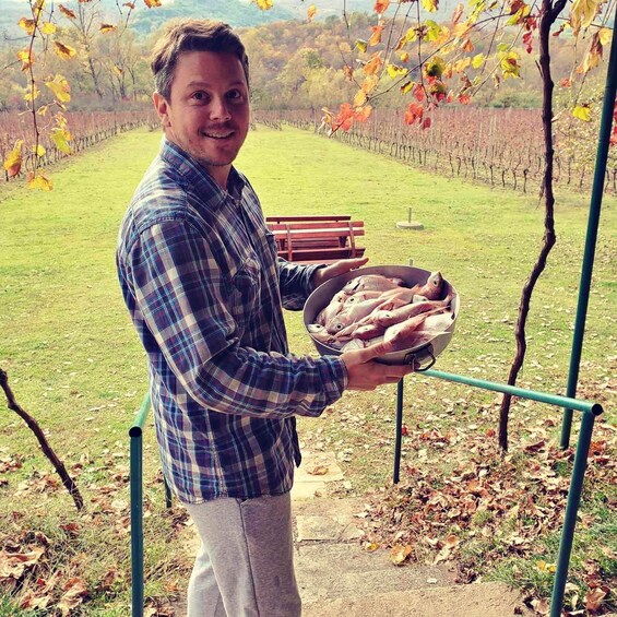 Our grapes are hand-picked, and the production is carried out in a traditional way, with respect for time-tested methods and the natural character of each harvest. During the tasting, guests enjoy a guided presentation of our estate-made products: wines from our own vineyard, homemade grappa- rakija and local honey.