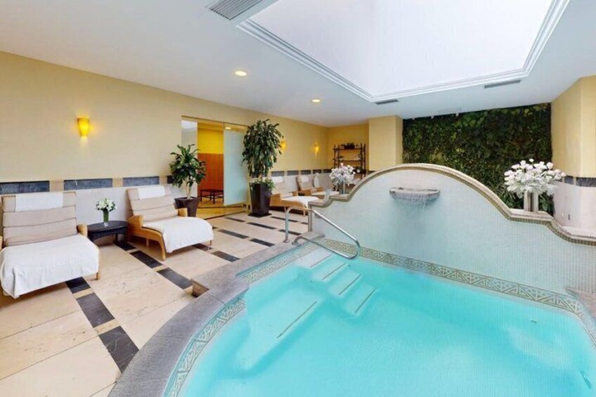 - The pool and hydrotherapy areas require walking, navigating level changes, and entering and exiting the jacuzzi, pool, steam room, and sauna. This experience is not recommended for guests with limited mobility.
