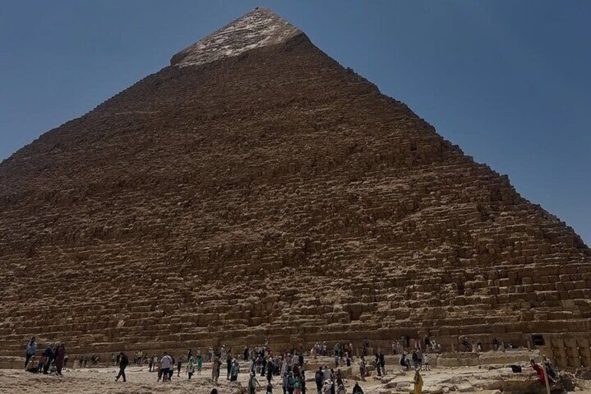 After the pickup from your hotel you will visit Pyramids of Giza The Pyramids Of Giza are the most famous monuments of ancient Egypt, built during the 4th Dynasty (around 2600–2500 BC). They include: The Great Pyramid of Khufu – the largest and only surviving Wonder of the Ancient World. The Pyramid of Khafre – known for its higher position and the nearby Great Sphinx. The Pyramid of Menkaure – the smallest of the three main pyramids. Also you will see another 6 small pyramids in the same area Totally in Giza There are 9 pyramids You will see the eastern and western cemetery tombs for workers or slaves