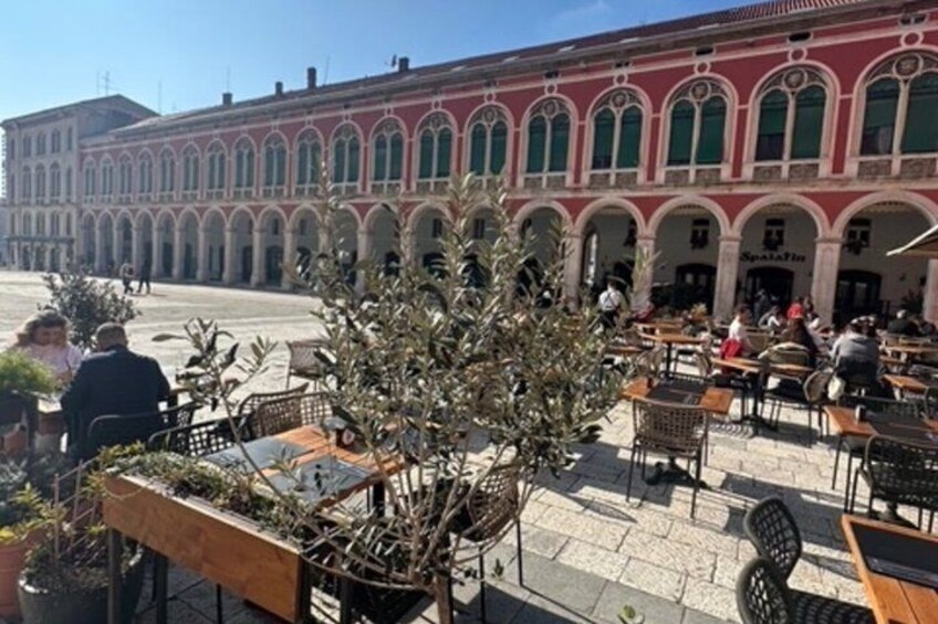 Our tour will start at the beautiful heart of Split, called the Riva. This is our living room — a place where we locals love to spend most of our time, living out a part of our culture: the art of doing nothing. We enjoy sitting for a coffee and talking for hours.