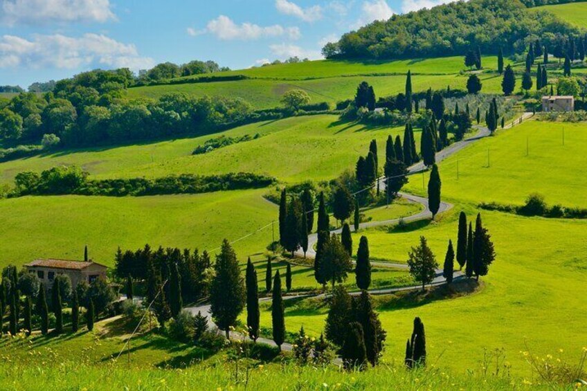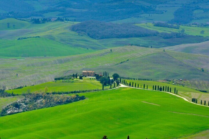 Montalcino is a medieval town on top of a hill overlooking the Orcia valley. This is also the production area for one of the best italian red wines named Brunello di Montalcino. Since this is a flexible tour, it' s possible to have a stop to Montalcino and visit a winery for lunch or wine tasting (at own expanse) or even just for a walk in the city centre.
