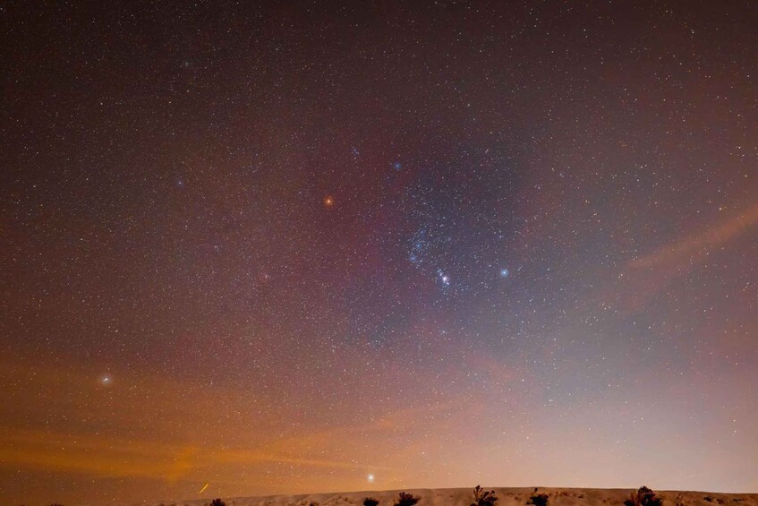 Stop at a scenic dune-top for refreshing Arabic tea or coffee while enjoying the gentle night breeze and the silence of the vast landscape. Learn about desert stars and constellations during a short stargazing insight session. Whether you come with family, friends, or alone, this calm and enchanting night adventure blends culture, nature, and relaxation in perfect harmony.