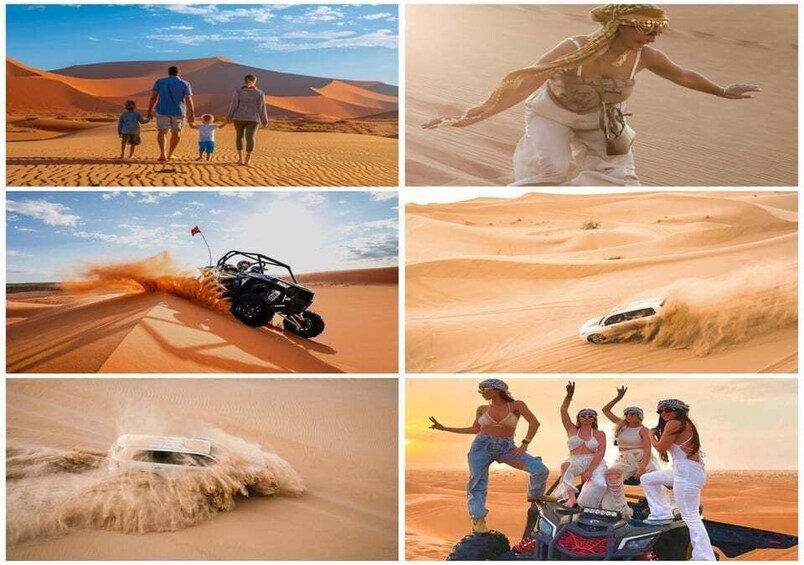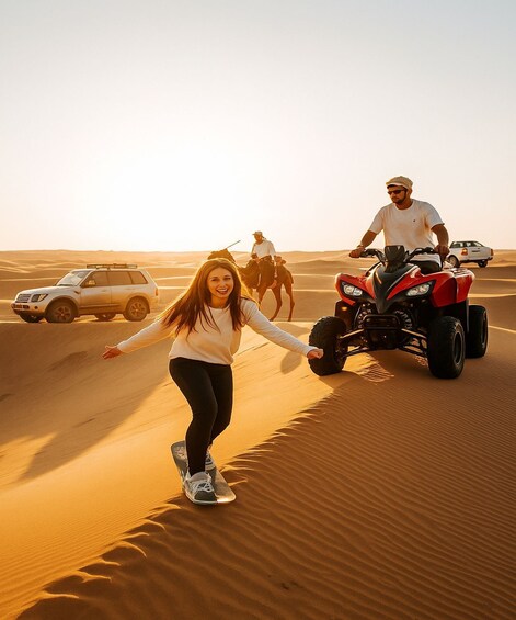This option is included desert safari, 30 Minutes QuadBike (quad bike), Sandboarding and Inland Sea