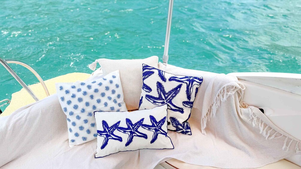 Throughout the tour, the speedboat is prepared with a romantic Boho Chic ambiance, sparkling wine, and a personalised playlist with the couple's songs, creating a cosy, elegant, and passionate atmosphere.
