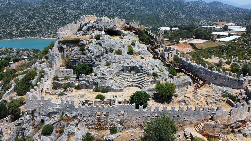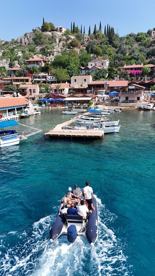 We will pickup from Olympos at 10:30 and from Demre at 12:30 after that we will head to Demre Harbour. Our first sight for the day is the Sunken City, an ancient town that dates back 2000 years to the Lycian period and was destroyed by an earthquake in the 2nd century. We will cruise over this protected World Heritage site friendly and slowly to enjoy the view; however, as this is a protected sight, no swimming, diving, or snorkelling is allowed. Following this, we will anchor down near Kekova and the island of Kalekoy to visit Simena Castle. Guests can walk through the town's cobbled streets or head into the castle to witness some fantastic views of the Kekova region.