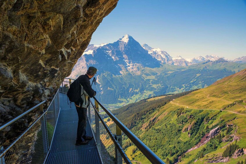 During your free 4 hours of sightseeing in Grindelwald, start by exploring the charming village with its traditional Swiss chalets and vibrant atmosphere. Take the Grindelwald-First gondola up the mountain for breathtaking views and adventurous activities like hiking or the First Cliff Walk, a thrilling suspension bridge offering panoramic views. For a more relaxed experience, visit the Gletscherschlucht (Glacier Gorge) for a serene walk along towering cliffs and waterfalls.