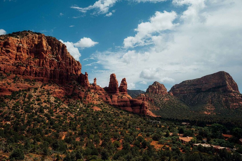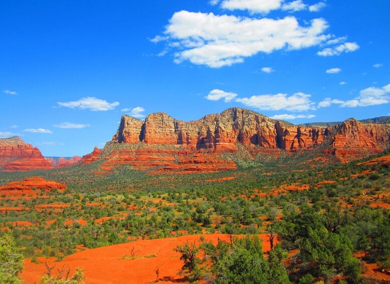 Begin your journey with a pickup from your hotel or residence in a comfortable SUV or van. Wind through Sedona’s most iconic landscapes, each with its own storey to tell. Marvel at the towering spires of Cathedral Rock, one of the most photographed spots in Arizona, and feel the sense of peace that many visitors describe at this powerful vortex site. Pause at Bell Rock and Courthouse Butte, where the formations seem to glow in the shifting desert light.