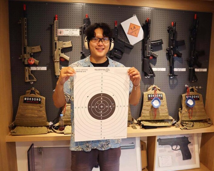 After eating some food, we will meet at a certified indoor shooting range in Seoul. Your host will guide you through everything, starting with a quick safety briefing to make sure you will feel totally comfortable and safe.