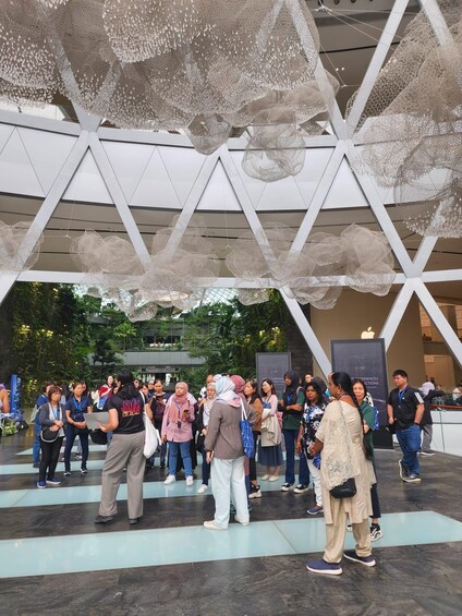 Meet your guide and begin your tour. Find out what the land that Jewel sits on was formerly used for. Discover how many storeys the building has, and how it is that Jewel is not hot since it is akin to a giant glasshouse.