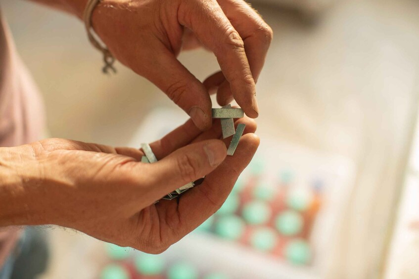 The tour continues in the exhibition hall, with a guided reading of works and materials: you'll observe surfaces, layers, and light, with attention to detail and the time of the material. You then enter the operational studio, where you can see the backstage of the work: tools, tests, work in progress, and process phases that are normally not accessible. A live demonstration of the paper mosaic technique follows, to understand up close how the fragments are composed and how the work is created.