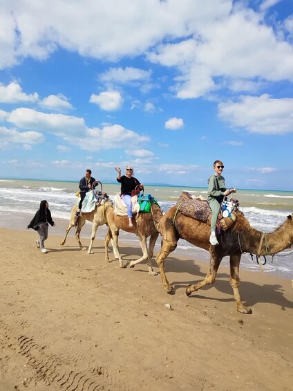 Next, hop back in the van for a short drive to Achakkar Beach, where a unique camel ride awaits. Ahmed shares stories of Berber traditions as you sway atop a dromedary along the golden sands, the Atlantic waves lapping nearby and scenic views unfolding on the way. Feel the rhythm of Morocco’s coast for 20 minutes, soaking in the serene beauty.