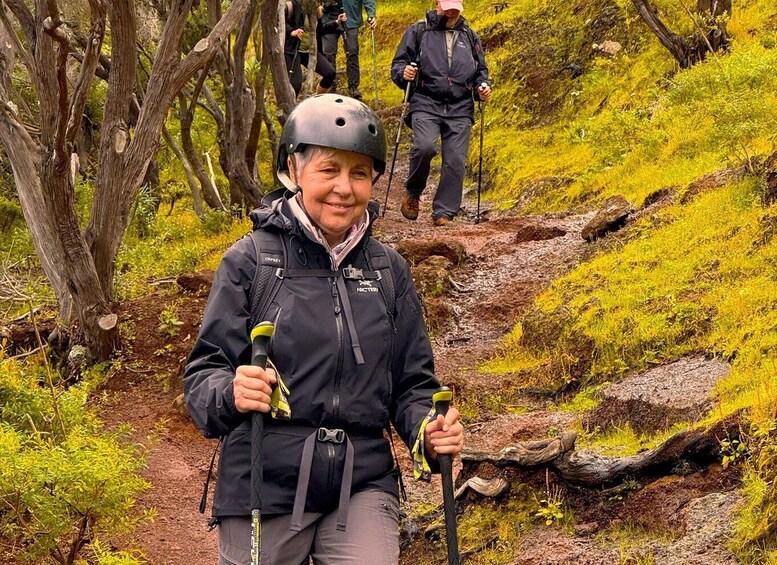 The hike then begins. The trail reveals sweeping views, ascents and descents across forested hills and volcanic ridges, creating a constantly changing landscape. You will walk along narrow paths winding across rocky ridgelines, open forest slopes and valleys before reaching a historic water channel, now mostly dry except after rare heavy rains.