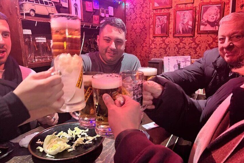 Experience the vibrant Tokyo nightlife on this all-inclusive private tour, visiting three local bars followed by a 90-minute karaoke session in a completely private room. Savour classic Japanese izakaya flavours with yakitori skewers and drinks, enjoy casual sushi and comfort food, and unwind at a cosy local bar. The private karaoke room allows you to sing your favourite songs without distractions, making it perfect for couples, families, and friends. Enjoy a fun-filled night with insider tips from a friendly local guide who knows the best spots in town.