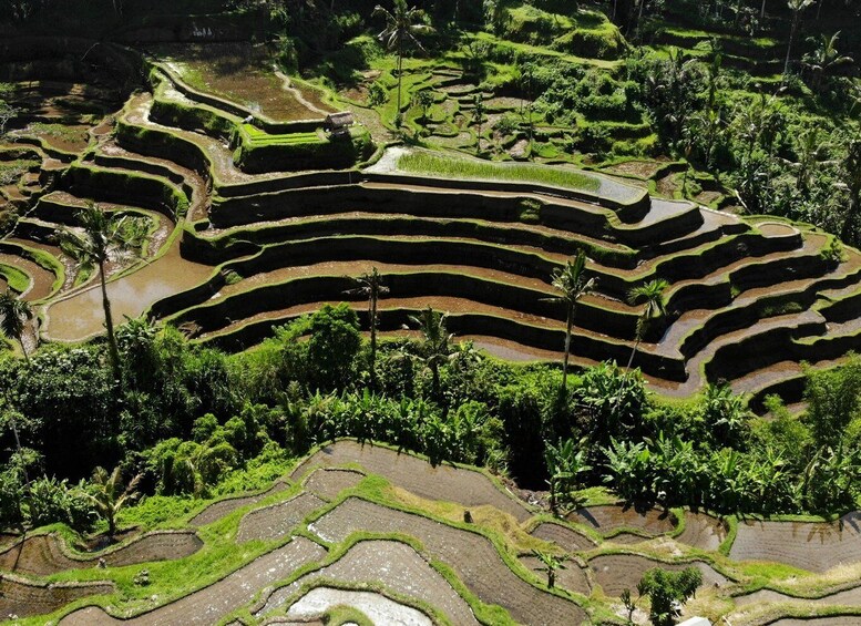 After the temple visit, the tour continues to Uma Ceking Rice Terrace, where you can walk through terraced rice fields shaped by Bali’s traditional irrigation system and enjoy scenic views at a relaxed pace. The final stop is Manuaba Waterfall, a quieter jungle waterfall away from larger crowds, offering time to rest, take photos, or enjoy the natural surroundings. Time at each location is flexible, allowing the experience to adjust to your comfort and interest.