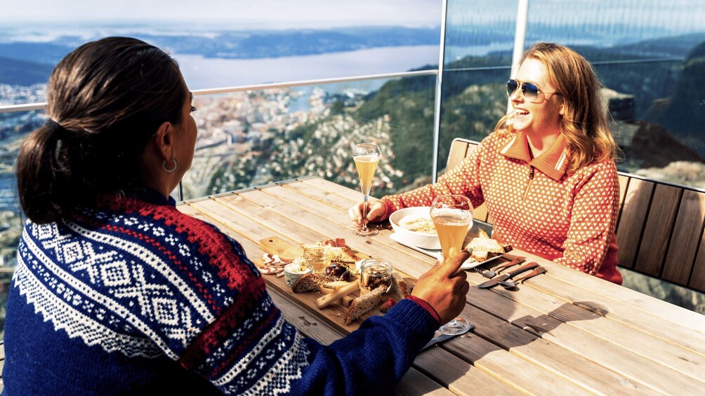 Indoors, Ulriken Café serves hot and cold Norwegian dishes, while Skyskraperen Restaurant offers a refined 3-course lunch and 5-course dinner experience.