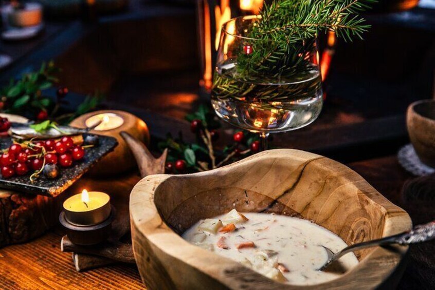 VIP Northern Lights Forest Dinner in a Glass Igloo