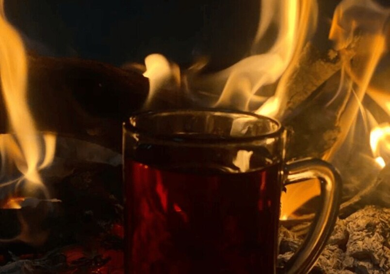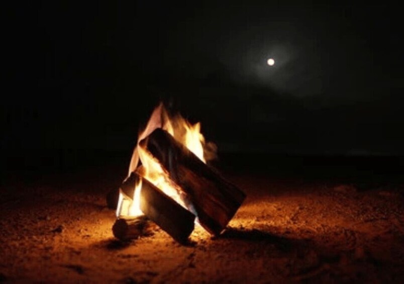 Enjoy a traditional Bedouin dinner in the desert around the fire under the stars, preparing Bedouin tea and coffee. Calm candlelit atmosphere, including water, cold drinks, and transport within the desert.