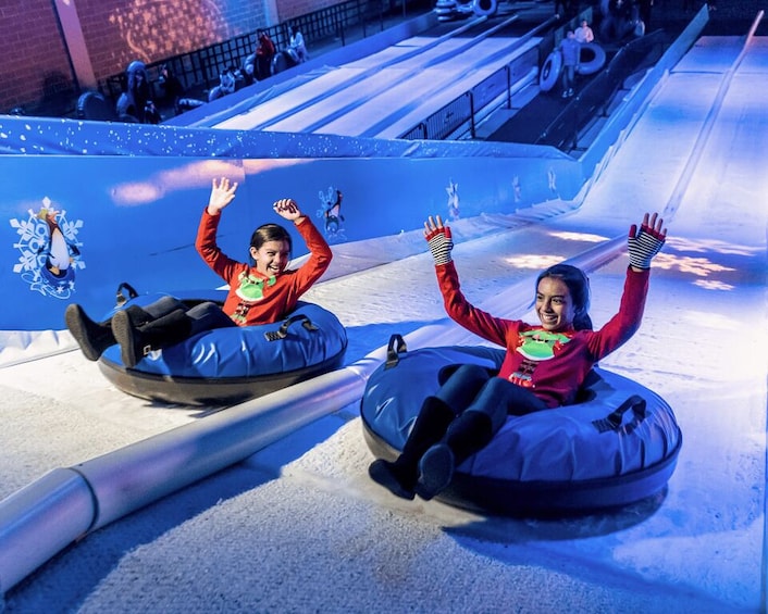 Step into Winter City Lights and discover an enchanted 1.5-mile-long trail of Christmas lights and displays through the woods, including a 52-foot tall programmable Christmas lights tree and a 200-foot diameter canopy of lights. Feel the thrill of an 8-lane snow tubing ride for an extra cost.