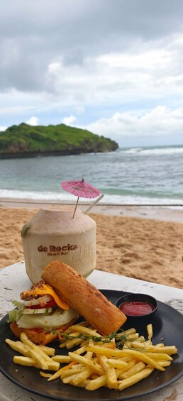After completing the cave tubing activity, take time to freshen up and relax before continuing the journey towards the southern coast of Gunungkidul. The next stop is De Rocka Beach Bar, a stylish beachside spot overlooking the Indian Ocean. Here, you can unwind, enjoy the sea breeze, take photos, or order food and drinks at your own expense while soaking in the coastal atmosphere.